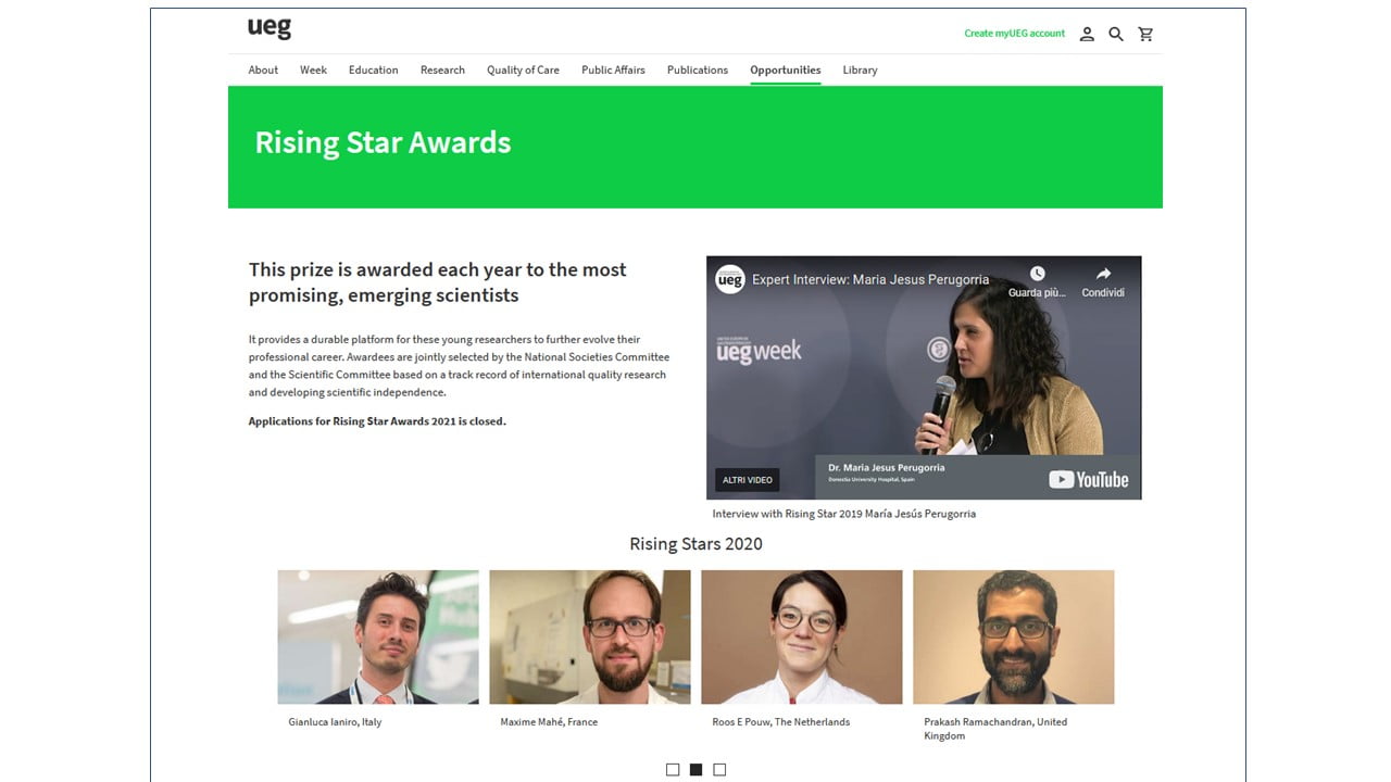 Un premio assegnato ogni anno ai giovani scienziati emergenti più promettenti: questo il Rising Star Award della UEG (United European Gastroenterology) che ogni anno premia dieci giovani ricercatori e che quest’anno vede il Dr. Gianluca Ianiro del CEMAD ricevere questo prestigioso riconoscimento. United European Gastroenterology promuove lo sviluppo delle conoscenze sulle malattie digestive favorendo prevenzione,...
